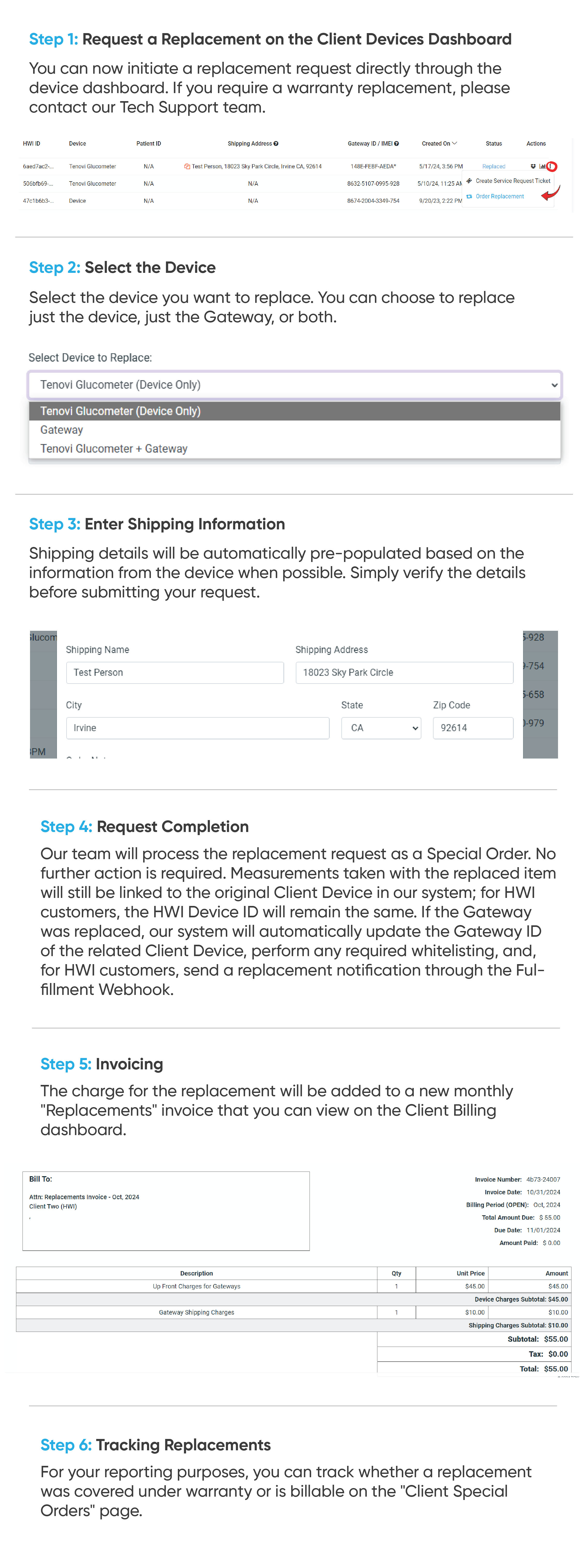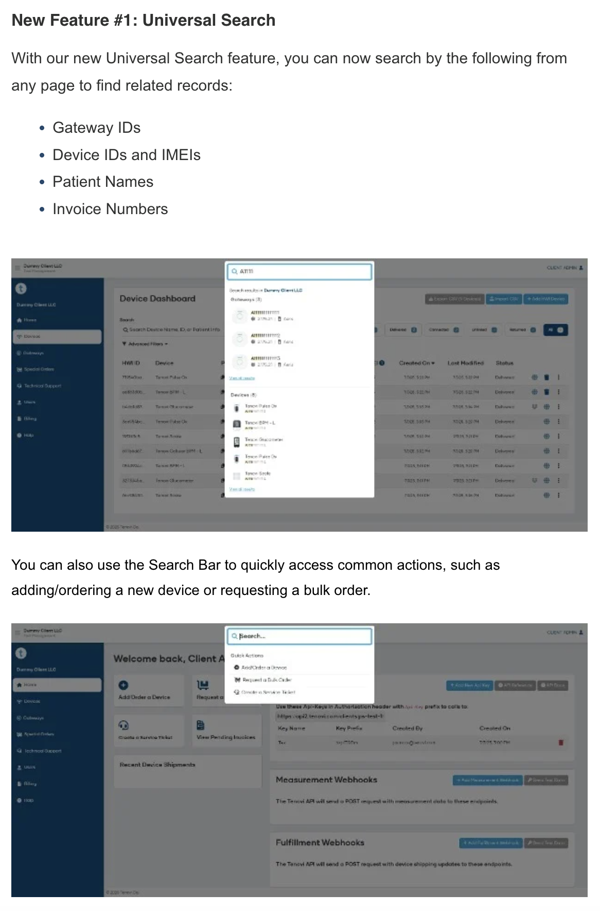 - HWI Clients can now add Gateway IDs/IMEIs and Tracking Links immediately when creating new HWI Devices with the “Ship Ourselves” option from the Client Devices dashboard. Note that if a Tracking Link is included, a Gateway ID is required and the Client Device will immediately be marked as “Shipped.”