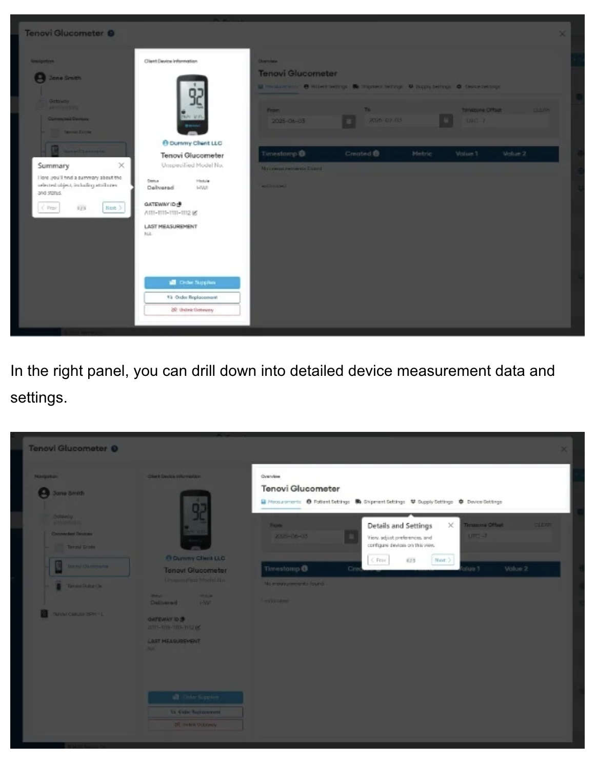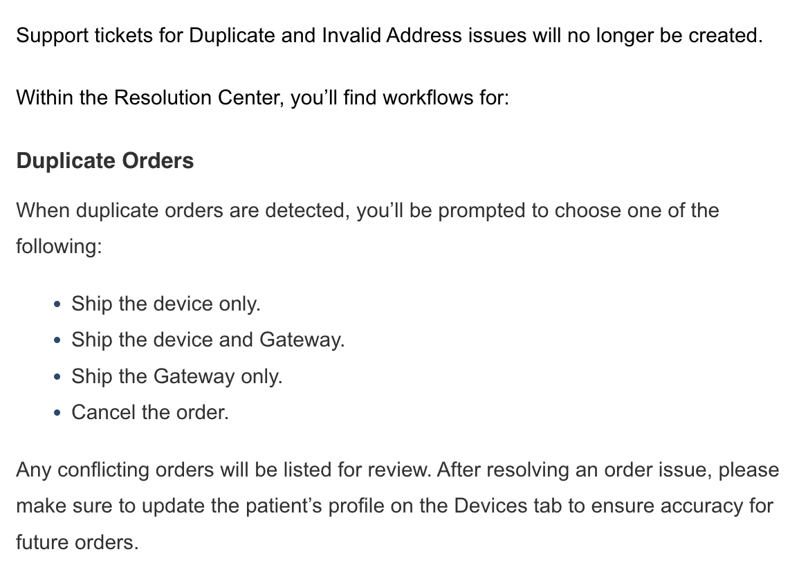 - For ASR clients with automated glucometer supplies ordering, you can now edit the shipping information for Connected Client Devices in order to update the address that new supplies will be automatically shipped to (for example, if a patient moves).