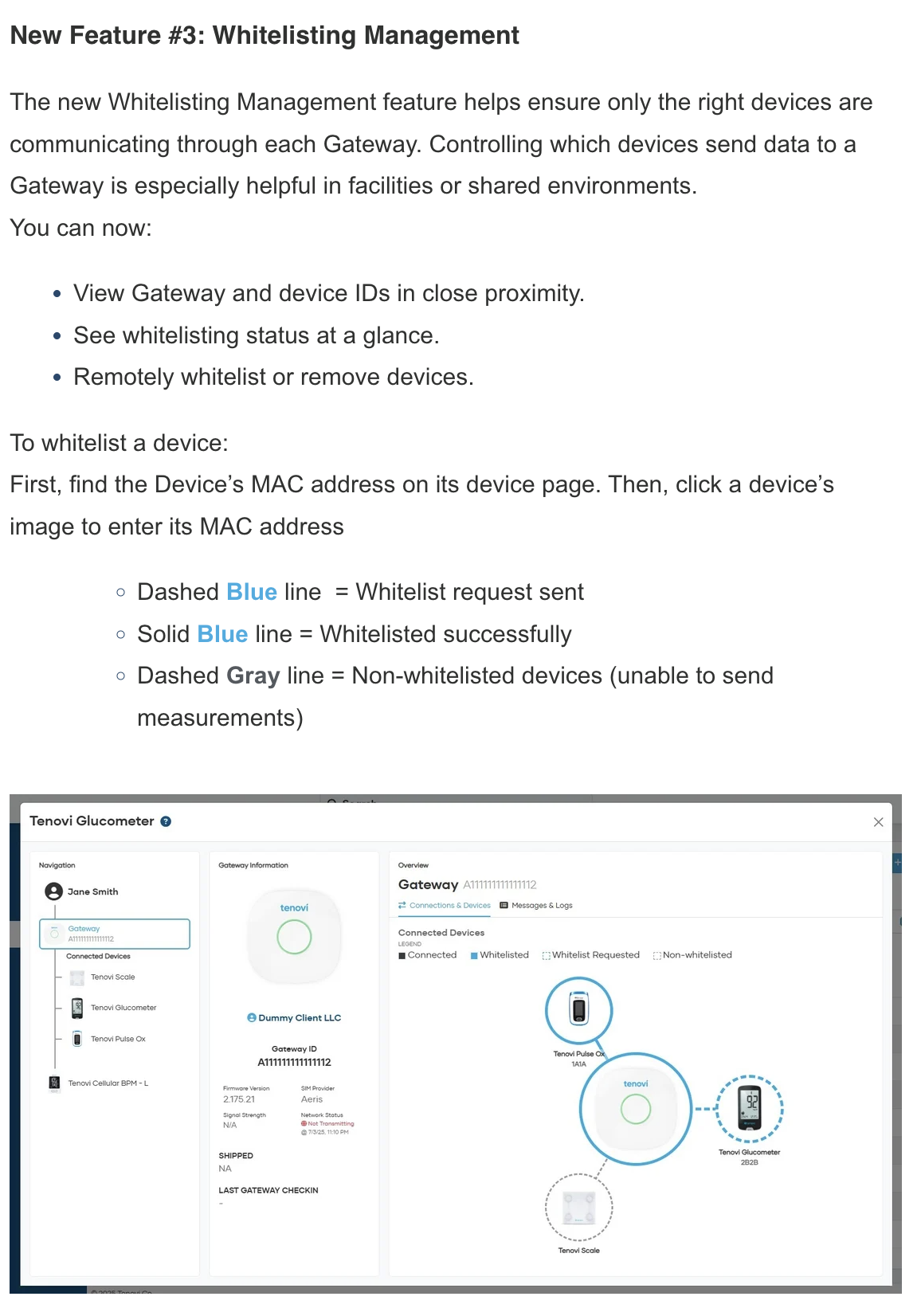 - The Device Data popup now includes whitelisting information (if known) for the Gateway associated with that device.