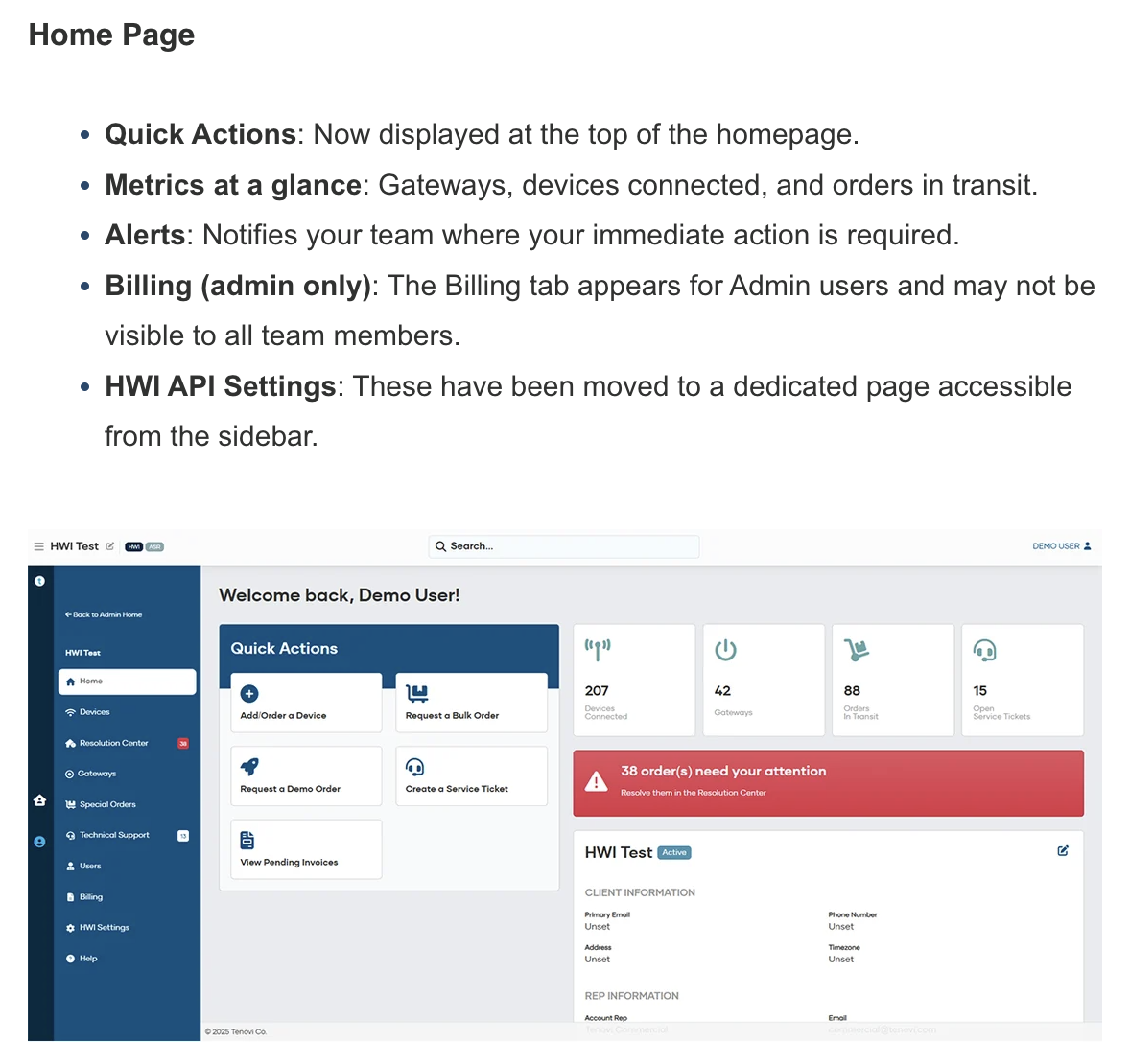 - For HWI Clients, we have added new security features around HWI API Key creation. The primary email on your account will now receive an email every time a new HWI API Key is created. The user that created the key (for new keys) and the creation date (for all keys) is now also displayed on the Client Home dashboard.