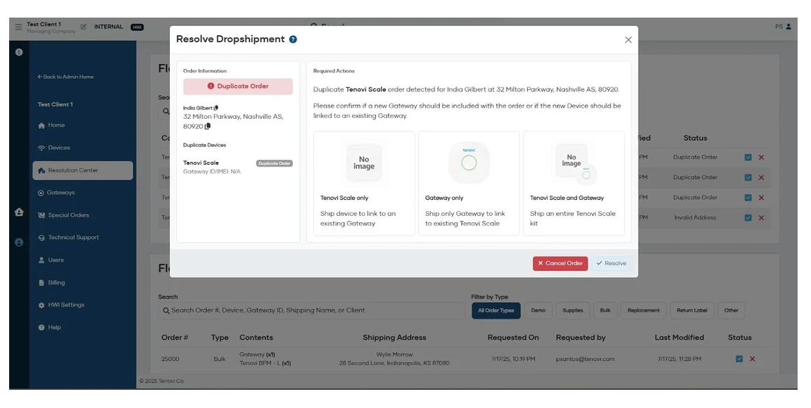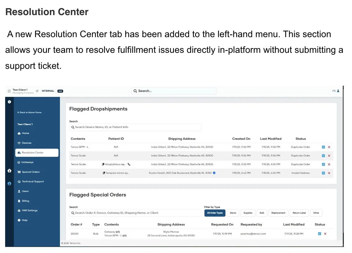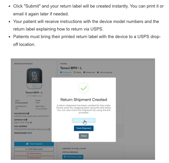 - When requesting new Devices, there is now a “Ship Gateway Only” option. This is designed for situations where a patient already owns a Tenovi Gateway-compatible device (e.g. a BPM), but you still need Tenovi to dropship a Gateway to the patient. For these requests, you will only be billed for the Gateway.