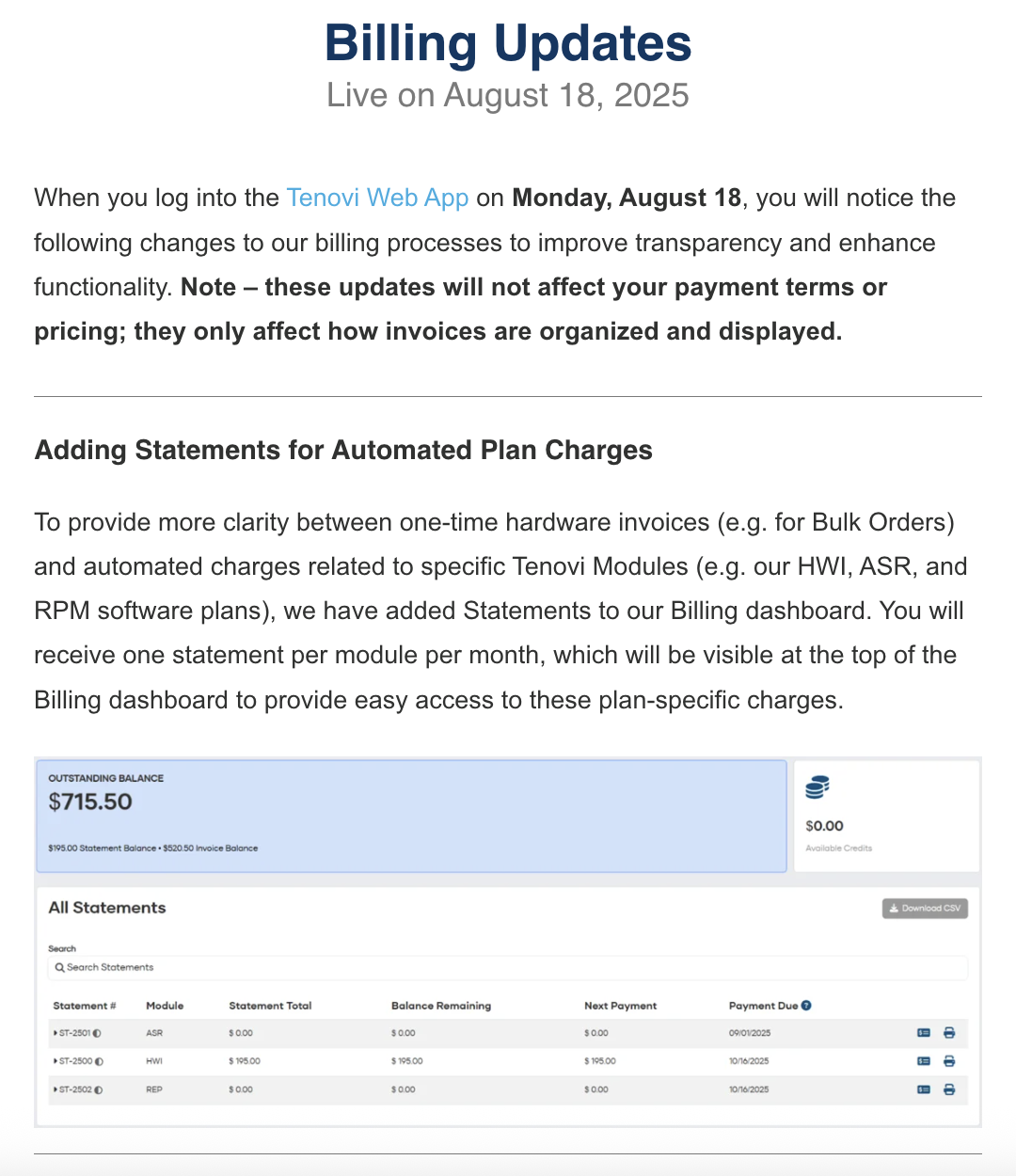 Sign up for email notifications of any Tenovi Web App updates or changes.