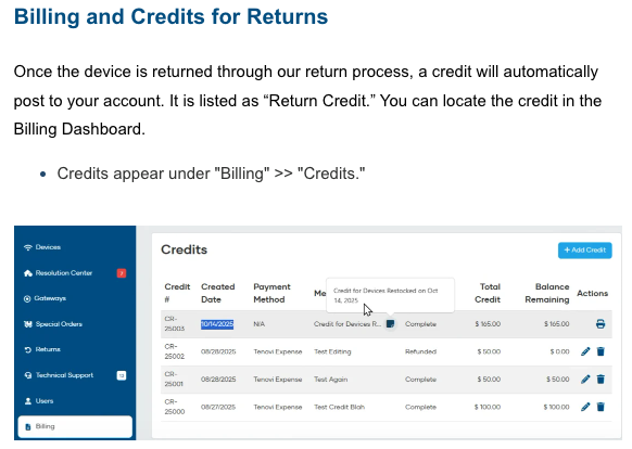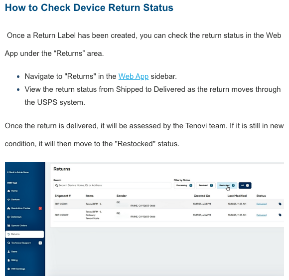- We added a new “Returned” tab to the Client Devices dashboard to easily view devices that were returned to our warehouse for any reason.