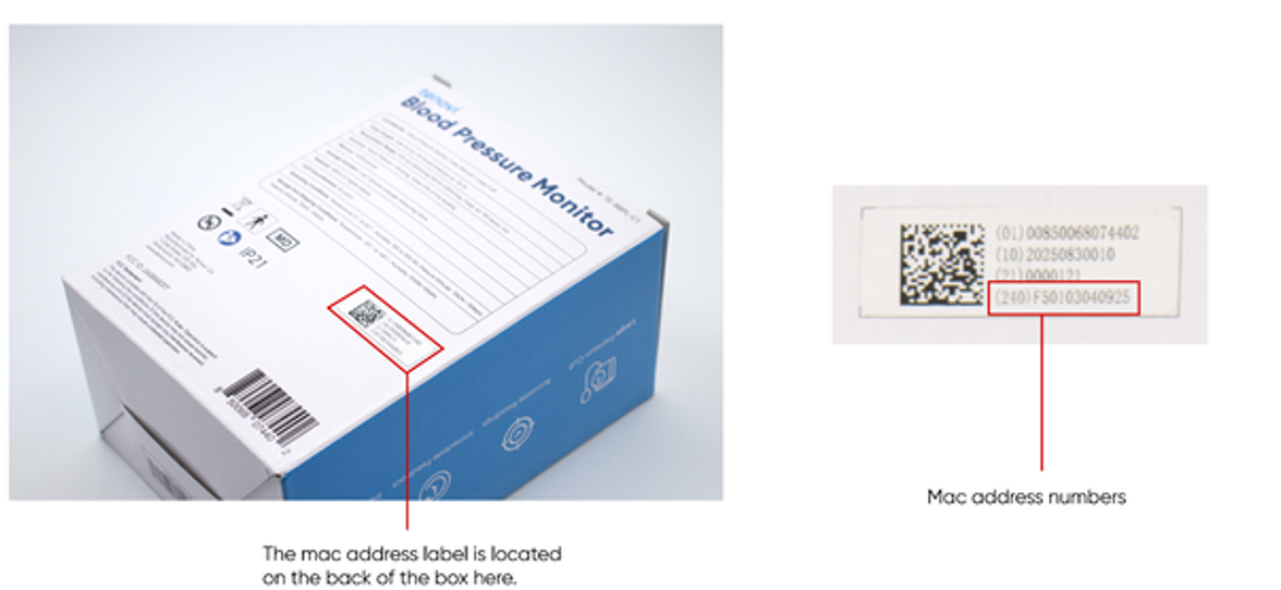 The Mac Address for the Tenovi BPM Gen3 can be found in the last line of the Datamatrix for the device’s Unique Device Identifier(UDI).