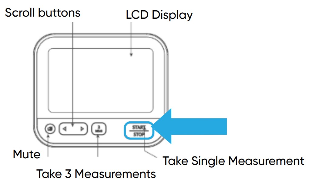 Triple measurement mode will take 3 measurements back to back, and the measurement that is displayed will be the average of those 3 measurements. Only the average of these three measurements will be shown, read aloud (if the device is unmuted), and sent to the Gateway. When scrolling through previous measurements on the device, measurements taken in triple measurement mode will be tagged with the icon “3 MEAS“. This measurement will always be viewable, even if you scroll past it.