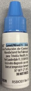 - On the blue portion of the label of your control solution, it will state the control solution: Level 1, 2, or 3.